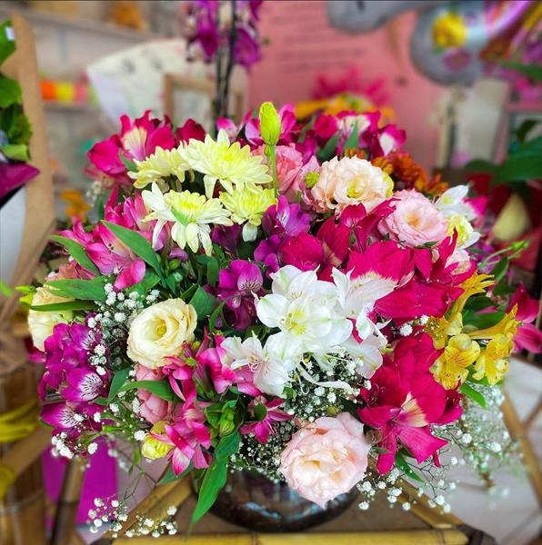 Arranjo exuberante em tons vibrantes e delicados. Uma explosão de cores e texturas para expressar alegria e beleza em cada detalhe. O presente perfeito para emocionar.